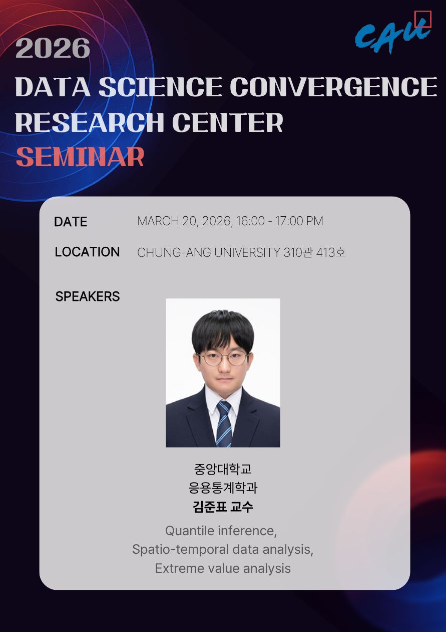 The Data Science Convergence Research Center at Chung-Ang University will hold a seminar on March 20, 2026.