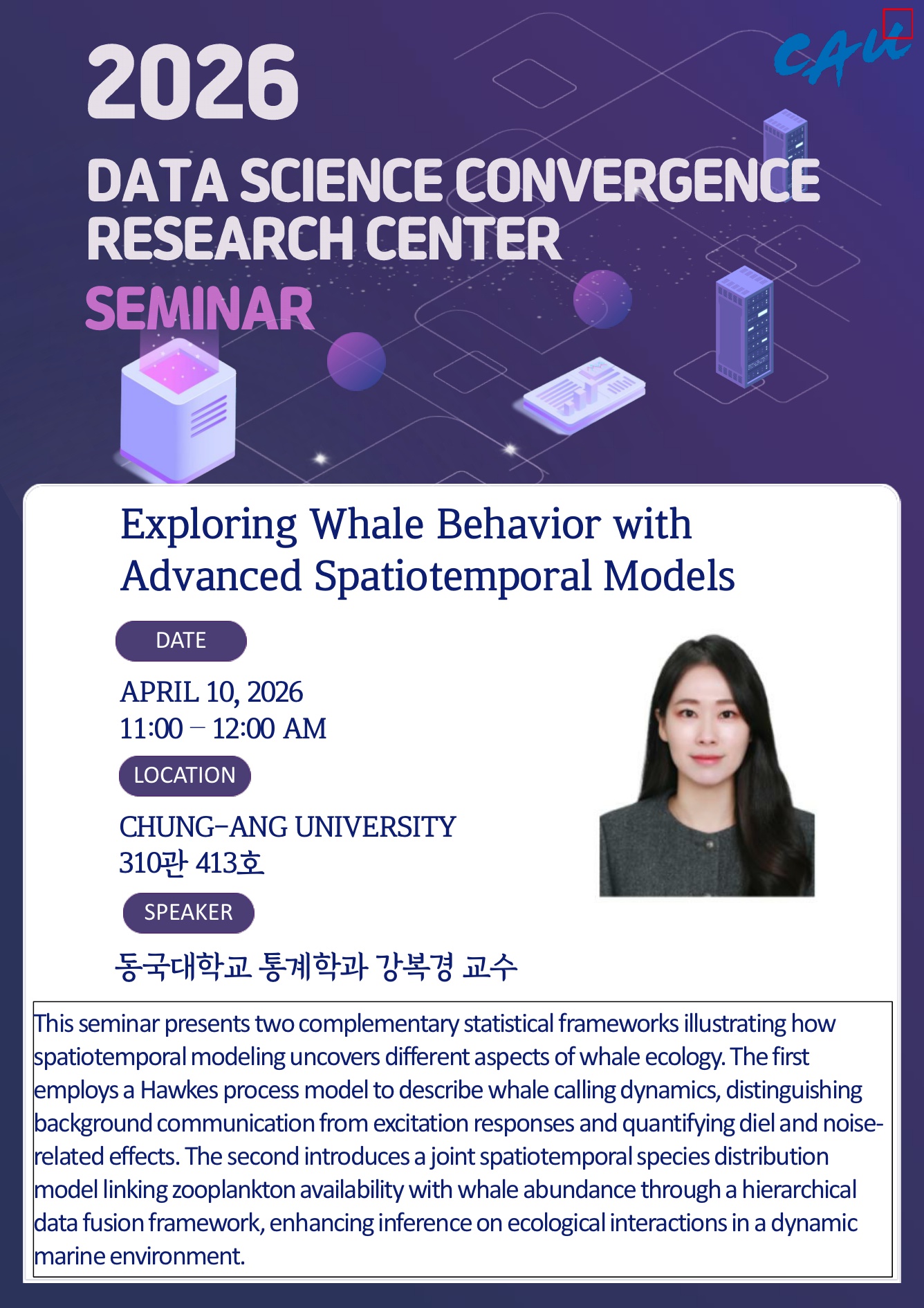 The Data Science Convergence Research Center at Chung-Ang University will hold a seminar on April 10, 2026.